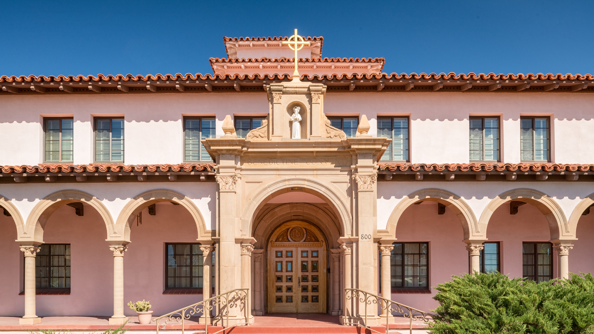 The formal name of the property was the Benedictine Convent and Perpetual Adoration Shrine of Christ the King. The development of this Catholic religious center began on June 28, 1935 when Tucson Bishop Gercke sent a formal letter of invitation to the Benedictine Motherhouse in Clyde, Missouri. The American Order of St. Benedict was established by a pioneer group of nuns who migrated from the Perpetual Adoration Convent of Maria Rickenbach in the mountains of Switzerland, establishing their community’s on the prairies of Missouri in December of 1875.