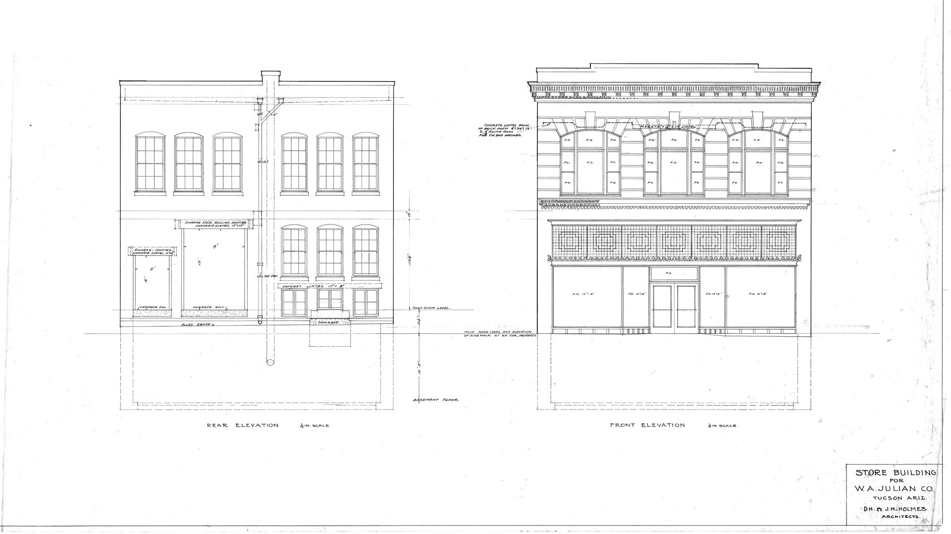 In 1911, J. H. Holmes moved to Globe, Arizona, to oversee the construction of the Elks Club, and to create the leading architectural firm in Globe. David Holmes sold his house on 3rd and in 1911 designed the D. H. Holmes House at 732 East 3rd Street done in the clinker brick California Bungalow Style. The last major documented work of the Tucson firm was the University of Arizona “Arizona Hall (South Hall)” dormitory located on South Drive.